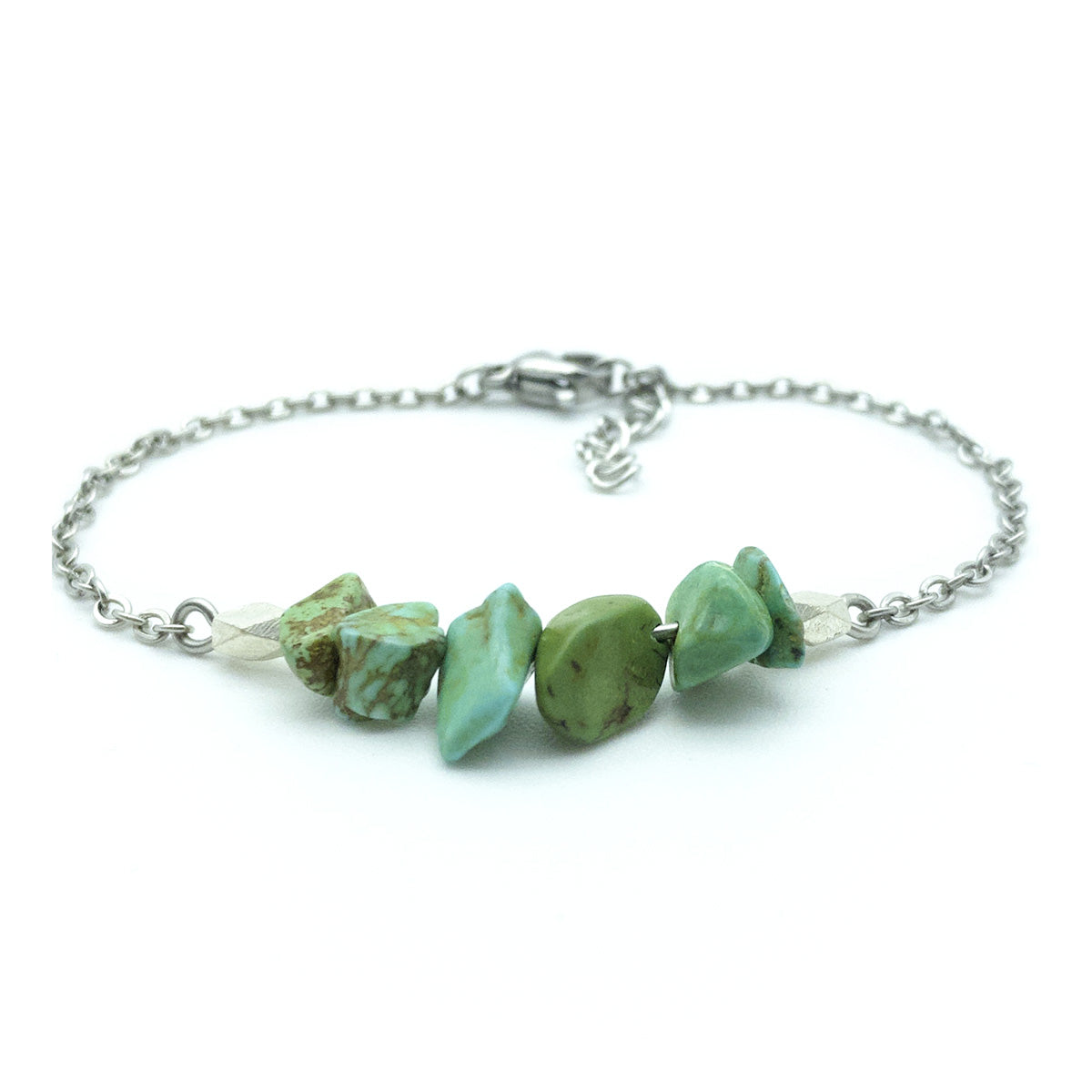 Ein Armband, das für alle Gelegenheiten geeignet ist: Durch seine geringe Größe trägt es nicht auf und die verwendeten Steine verleihen ihm Farbe und Charakter.